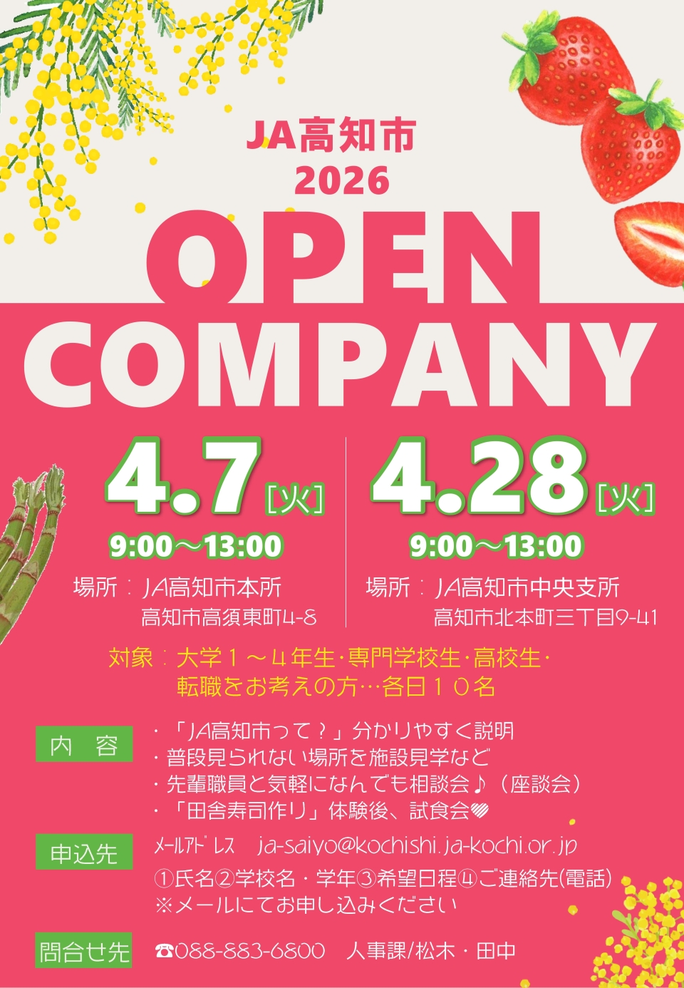 お問い合わせ先/所在地 〒781-8551 高知市高須東町4-8担当者 人事課(松木・田中)電 話 088-883-6800FAX 088-883-6810メールアドレス ja-saiyo@kochishi.ja-kochi.or.jp